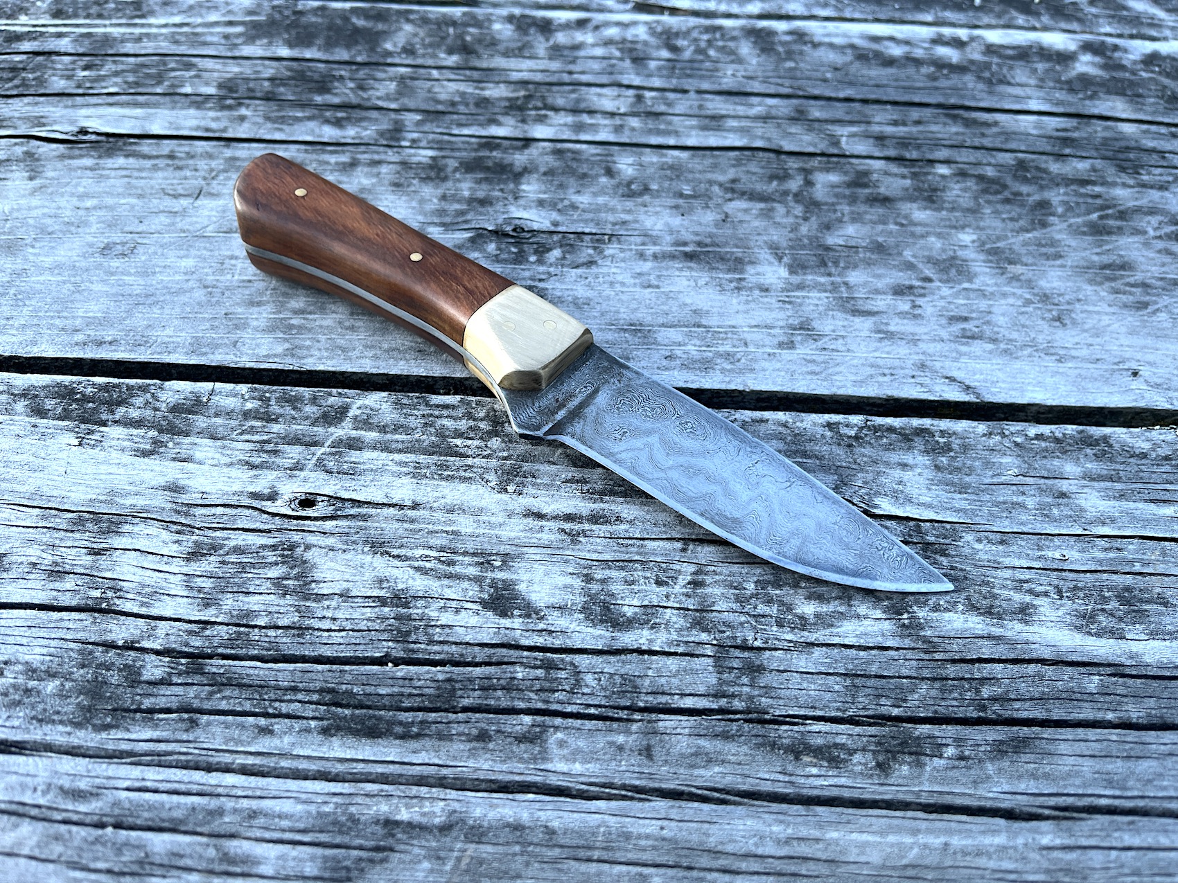 Each knife is forged with premium materials: carbon steel, or an authentic hand forged Damascus billet. Two full days goes into the forged welding of the billet before forming of the knife can begin. All knives are hand finished for balance, edge retention, and durability with no compromises — just functional, beautiful blades made by Rob who lives and breathes the craft.